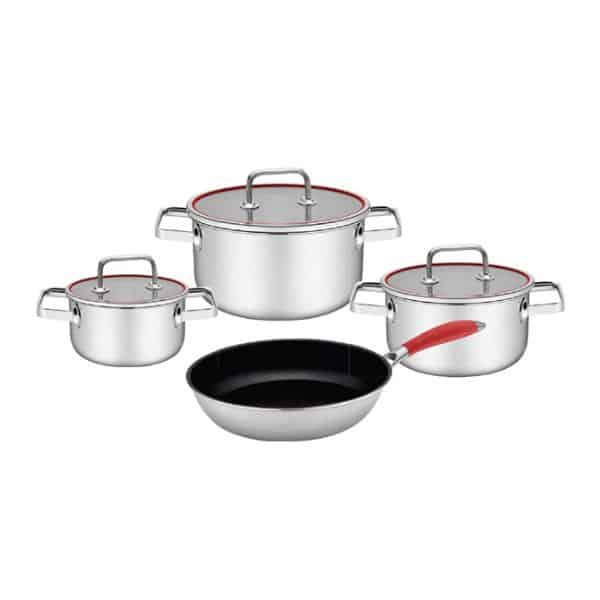 – Bộ nồi chảo inox đáy liền bao gồm 4 món tiện ích thỏa mãn mọi yêu cầu bữa cơm gia đình.