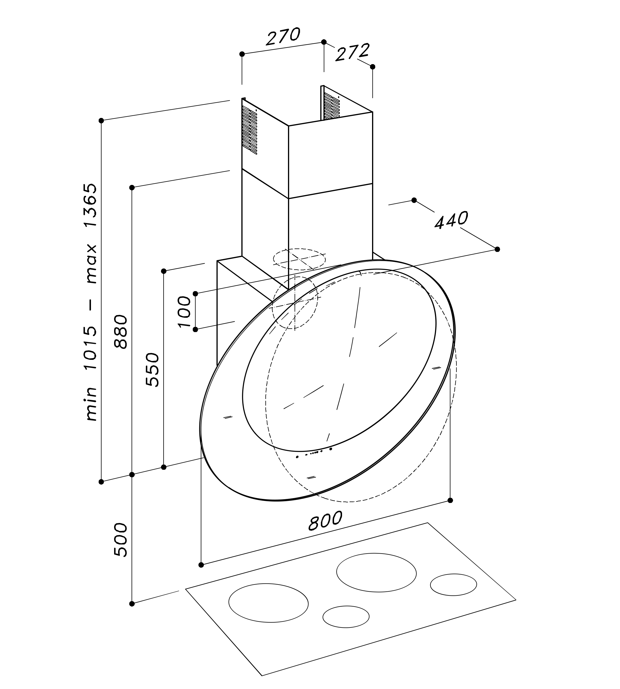 – Máy hút mùi áp tường trang trí hình tròn, chế tạo bằng thủ công kết hợp gốm Ceramic và Inox 304.